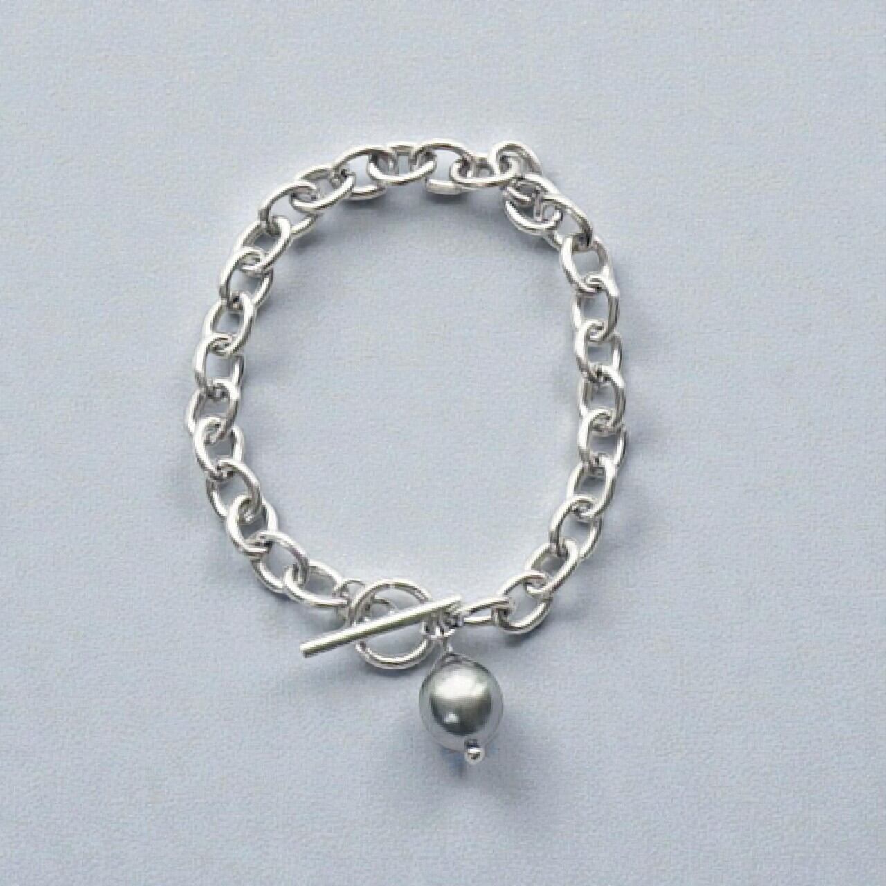 タヒチパール×ステンレスの新しい組み合わせを取り入れた、モダンで洗練されたブレスレット。