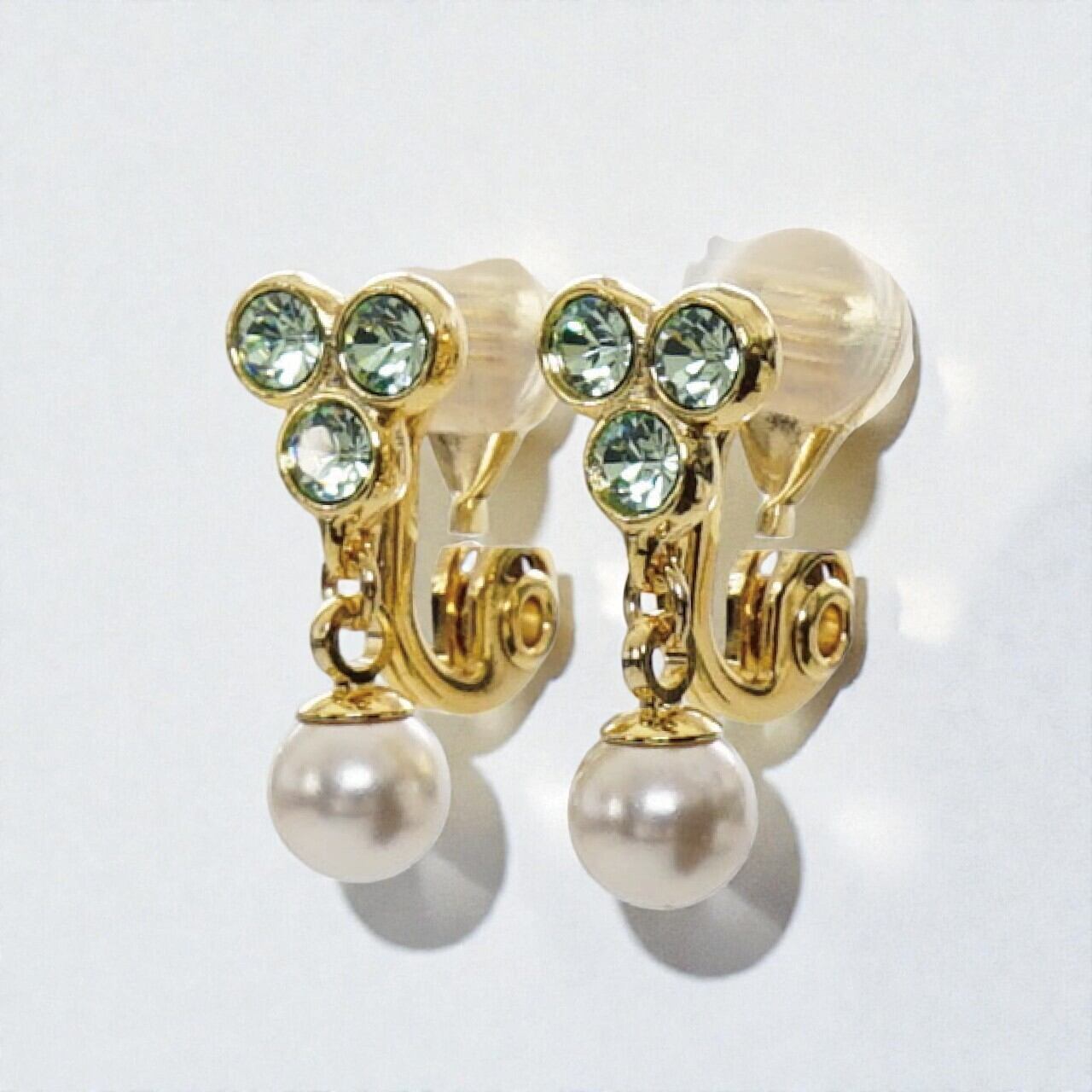 上品なガラスパールの輝きが特徴で、小ぶりながらも存在感を放ちます。